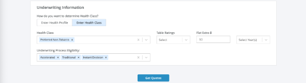 Una vez completadas las tres secciones, haz clic en el botón “Get Quotes” para obtener las cotizaciones de las distintas aseguradoras o carriers basadas en tus parámetros de búsqueda.